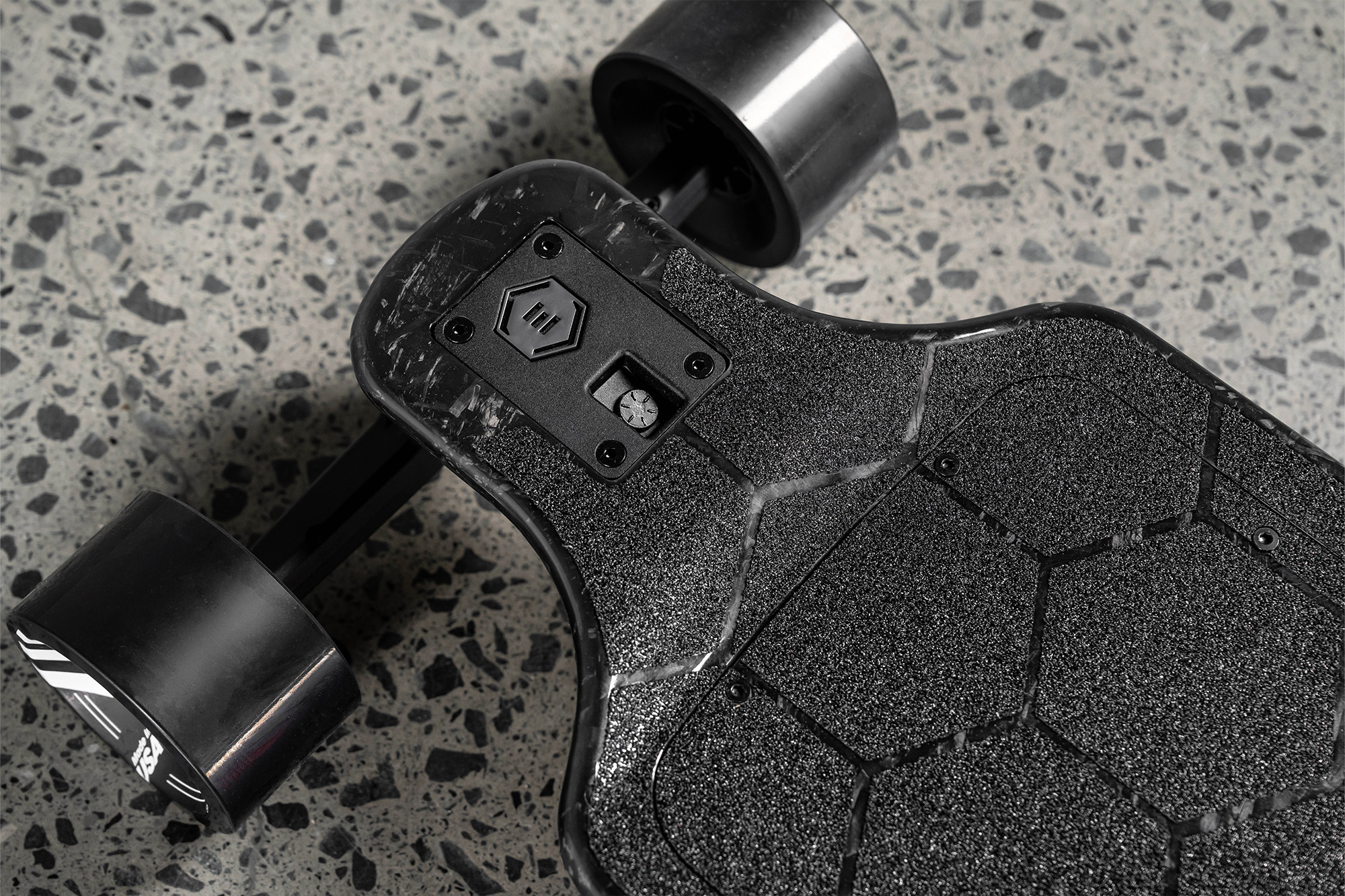 Das aus Kohlefaser gefertigte Deck spiegelt Evolves innovatives Design wider und vereint Stabilität mit Flexibilität – perfekt für anspruchsvolle Fahrer.